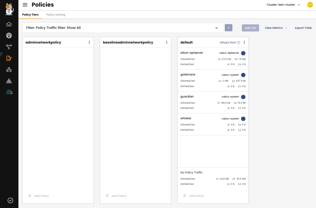 To make changes, such as creating or editing policies, you must use kubectl commands in your cluster.